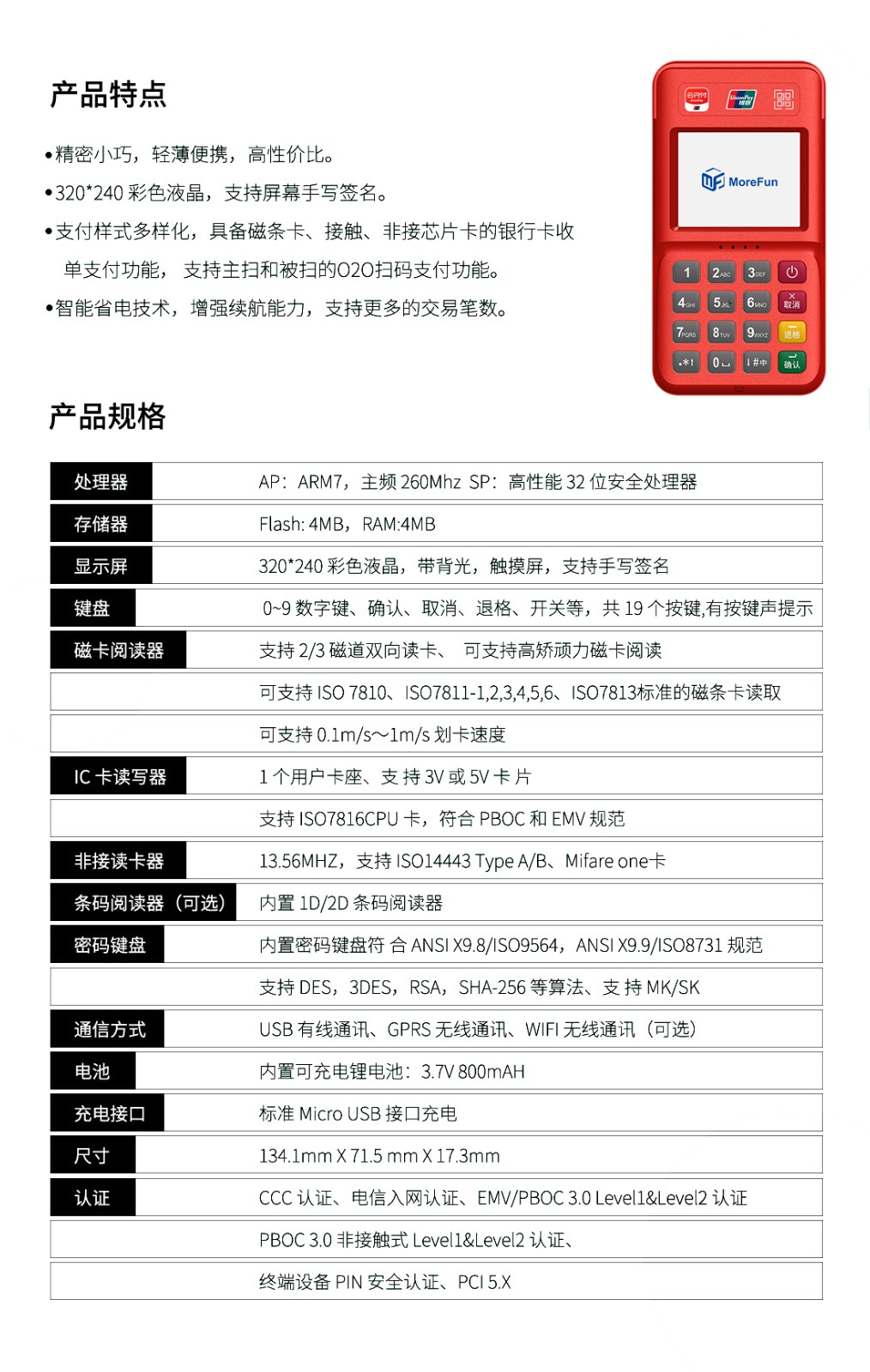 首页>>山西产品中心>>山西手持无线POS 山西电银支付-4G+扫码枪 高配版 * 性能优越:32位高性能ARM11安全CPU;整机通过业内更先进的PCI PED4.X 安全认证及国内受理终端PIN输入设备安全评估检测认证,多项措施保障金融交易的安全;* 时尚外观:外形小巧携带方便,高抗跌落性能、宽工作温度、防水防尘设计、外壳坚固耐刮、户外携带式作业更加耐久可靠。* 通讯备份:支持2G-3G扩展;* 超长续航:3.7V-800毫安稳定续航能力,智能电池管理保证持续工作18小时,待机72小时。 标准配置 返 回